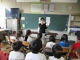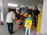 金崎駐在所の髙木様から交通安全講話をしていただき、それを受けて交差点の横断の仕方、1列歩行、駐車車両がある場合の通り方を模擬道路で練習を重ねました。