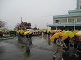 初めての下校では、並び方や人数確認の仕方を教えたかったのですが、今日の天気では難しいので、昇降口の中でお迎え当番の方に、引き渡しました。