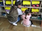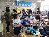 1年生の教室では、6年生が「1年生 お手伝い大作戦!!」と題して、1年生の教室にお手伝いに行ってくれています。荷物を出して整理してしまう、ランドセルをしまう、名札を付ける、体育着に着替える・・・など、日によってやることは少しずつ違いますが、1年生がスムーズにできるようにその子に合わせて、サポートしてくれています。
