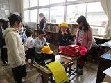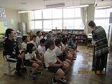 そのあと、体育館で防災に関する学習会を行いました。様々な危険から身を守るための方法を学習しました。
