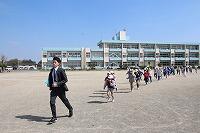 4月23日に第1回避難訓練を実施しました。今回の避難訓練は、職員室から火災が発生したという想定で、全校生が校庭南側に避難をしました。煙を吸い込まないようにハンカチで口と鼻を覆い、頭を守るため赤白帽子をかぶって避難しました。全員「お・か・し・も・ち」の約束を守り真剣に訓練に参加していました。