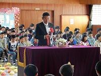 まず新任式を行いました。西方小学校は今年度5名の先生方が着任いたしました。児童代表がお迎えの言葉を述べました。そのあと、5名の先生方が一人ずつあいさつをしました。児童は、新任の先生方を温かく迎えていました。