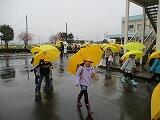 初めての下校では、並び方や人数確認の仕方を教えたかったのですが、今日の天気では難しいので、昇降口の中でお迎え当番の方に、引き渡しました。