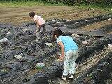 校庭南・正門のところの農園には、15日(水)にサツマイモの苗を植えました。昨日からは、ほとんど変化が見られず、残念そうでしたが、しっかり水やりをしてくれました。