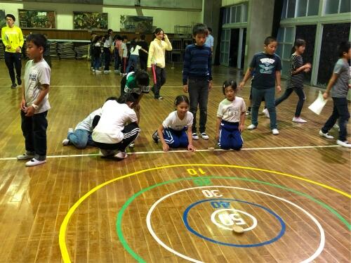 カーリング、松ぼっくり投げ、輪ゴム飛ばし、輪投げ…みんな夢中です。
