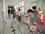 朝から、1階の廊下に万国旗を広げて並べてみると、経年劣化のため、だいぶ傷んでいました。午前中に、職員作業で、万国旗の修理をしました。