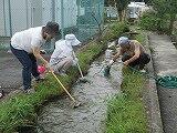 『ビオトープにメダカを放そう 大作戦』を、少しずつ進めています。今日は、地域の方と技能員の先生で、水の中の岩についた藻を取って流す作業をしてくださいました。