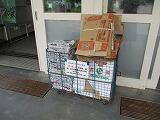1~4は、ひもで十文字にしばり、児童用昇降口の前の回収かごの中へ入れてください。入らない場合は、近くにきれいに重ねて置いてください。