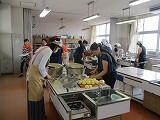 ▼その頃、家庭科室では…お母さん方と先生方で、「非常食を作る」下ごしらえをしていました。たくさんの野菜を切ったり、お湯を沸かしたり…