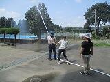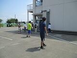 火災は、起こらない方がよいのですが、いざというときのために、初期消火の手段として、消火栓を活用できるように、先生方も、夏休みを利用して、訓練しました。