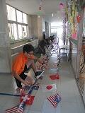 朝から、1階の廊下に万国旗を広げて並べてみると、経年劣化のため、だいぶ傷んでいました。午前中に、職員作業で、万国旗の修理をしました。