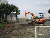 夏休み中の8月27日(火)・28日(水)の2日間で、PTA副会長の荒木さんの手配で、重機を使って、「土を掘り起こして固める→砂利を敷きならす」作業を、ボランティアで整えてくださいました。
