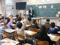11月13日に弾道ミサイルが発射された場合に対応する避難訓練を行いました。昼休みの途中に予告なしで避難を呼びかけるJアラート(訓練用)を放送し、児童の判断で校舎内に避難しました。