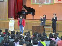 始めに講師の先生方の「さくら」「荒城の月」等の素晴らしい演奏を聴かせていただきました。これぞ 「和!!」 というような素敵な音色に児童も聴き入っていました。