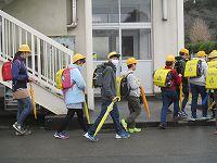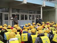 幸い、雨は上がっていたので、傘をささずに集まることができました。1列で歩いて、安全に気を付けて帰りましょう。