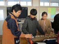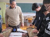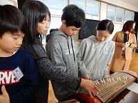 今回は、「文化箏」という本来の箏の2分の1の大きさに改良された箏を使用しての体験でした。一人一人に丁寧に教えてくださり、初めは良い音がならなかった児童も、教わったとおりに音を出すと、とても伸びやかな音色を出すことができていました。