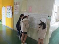 子どもたちの給食に関する作品や、調理員さんの紹介、食育に関するいろいろな情報が、掲示してあります。