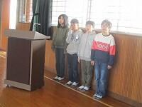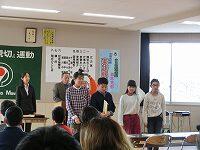 次に、「小さな親切運動」の実践発表をしてもらいました。1月25日(土)に、栃木東中学校で、「栃木市『小さな親切運動』実践報告会」が行われました。そこに、西方小の6年生の代表児童が参加し、日ごろ学校で行っている活動をまとめ、市内の44校の前で発表してきました。