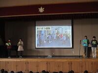 業間の時間に、体育館で、児童集会をおこないました。