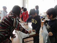 5年生が、家庭科の時間に、ミシンの使い方を学習し、「エプロン作り」に入りました。毎回、アシストネットボランティアの皆さんに、教えていただき、安全に安心して製作ができます。