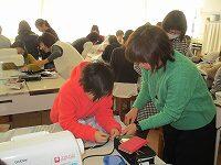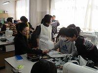 5年生が、エプロンを作っています。