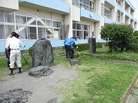 なれない草刈機や生垣バリカンを使い、なんとか校舎南側をきれいにしました。