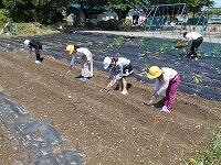 本来なら、1年生、2年生の児童と植えるはずでした。しかし、臨時休業が長引いてしまい、この時期をのがすと収穫に影響が出てしまうので、本日、苗を植えさせてもらいました。