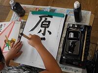 漢字の組み立ての学習で、部分の組み立てのポイントを確認しながら、毛筆の練習をしています。今回は「原」で、がんだれの中の部分を、文字の中心より少し右に寄せるのがポイントです。「文字全体のバランスを考えて書こう」と意識して練習に取り組んでいます。また、練習した半紙の整頓や道具の後片付けもスムーズに行っています。