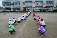 3密にならないよう、注意点を確認しながら、プールの学習が始まりました。準備運動は、校庭で広がって行い、プールサイドも間隔をとって整列します。「水中歩き」や「けのび」などの練習もクラスを3つのグループに分けて、混雑しないようにして楽しみながら学習しています。