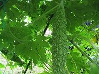 連日、雨が降り続いていますが、ゴーヤはすくすくと成長し、収穫できるまでに至りました。