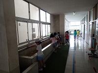 西方小学校では、定期的に教職員でコロナウイルス感染症予防対策委員会を開催して、本校としてできることを話合い、対策を講じています。先日7月21日に委員会を開催し、児童にさらなる手洗いを励行することにしました。その方法として、校内放送で手洗いの歌を流し、保健委員会児童が手洗いを呼びかけました。児童は校内放送を聞いて、改めて丁寧に手洗いを始めていました。