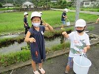 2年生の生活科「生きもの なかよし 大作せん」の学習で、ビオトープのザリガニを捕まえました。みんな手慣れた手つきで、ザリガニを捕まえ、その様子を観察しました。捕まえたザリガニは、自分や他学年の希望者で家に持ち帰り、大切に育てます。