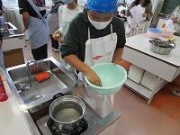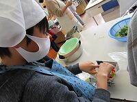 コロナ禍でも調理ができる環境を考えながら、野菜やゆでたまごの調理をしました。
