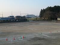 明日の持久走大会に向けて、スタートライン、カラーコーンなどの準備を行いました。