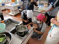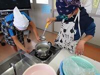 5年生が、初めての調理実習を行いました。