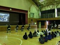 3位までに入賞した児童が前に出ました。 駐在所の髙木さんにあいさつしました。