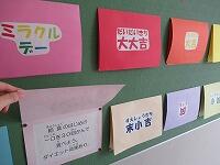 国語「詩のくふうを楽しもう」の学習では、詩の先頭の文字をつなげて読むと、意味のある語句になる手法を使って、いろいろな詩を考えました。今日は、グループで協力して「にしかたしょう」から始まる詩を作りました。