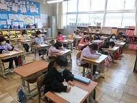 寒い朝でしたが、みんな元気に登校しました。昇降口前で全員検温をし、各教室に入りました。