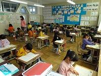 本日の昼休み、事前に日時を予告しないで避難訓練を行いました。地震があり、その後給食室から出火したという想定で行いました。はじめは地震に対応する訓練です。緊急地震速報の放送で校庭で遊んでいる児童も、校舎内にいる児童も自分の身を守る行動を取りました。