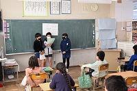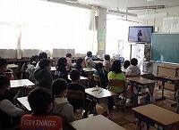 西方小学校では毎週火曜日は集会タイムがあります。今日は全校集会がありました。例年ですと全校生が体育館に集合して、校長先生のお話を聞いていますが、今年は3密をさけるため各教室の大型テレビで生放送を視聴する形で行いました。YouTubeで生配信される映像により全児童が全校集会に参加しました。