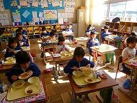 ▼1年生の給食の様子 ▼1年生の給食の様子