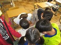 なかよし班で集まって、6年生に渡す色紙のメッセージを書きました。