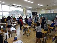 子どもたちは、耳をすまして英語を聞き取り、クイズ楽しんでいます。