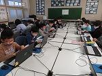 国語「コンピュータのローマ字入力」の学習で、パソコン室へ行きました。ローマ字を思い出しながら、キーボードで入力していくため、初めは時間がかかりましたが、少しずつ慣れて速いスピードで打てる子も増えてきました。課題とされる文字の入力が終わると点数が出るため、自分の上達が分かり、みんな楽しく活動していました。
