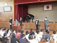 お話の後に、担任の先生の発表があり、子どもたちは大きな声で「よろしくお願いします」と挨拶していました。