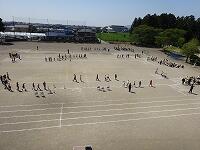 放送の指示で、児童は素早く避難をはじめ、校庭に集合しました。