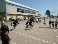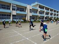 走り終わった後は子どもたちが先生を囲み「すごく速かった」「もう1回走って」などと先生に伝えていました。