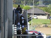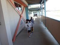 放送の指示で、児童は素早く避難をはじめ、校庭に集合しました。