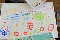 図工の時間に、「絵の具と水のハーモニー」の学習で