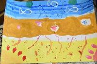 4年生は、図工で絵の具の塗り方をいろいろ工夫して楽しんでいます。